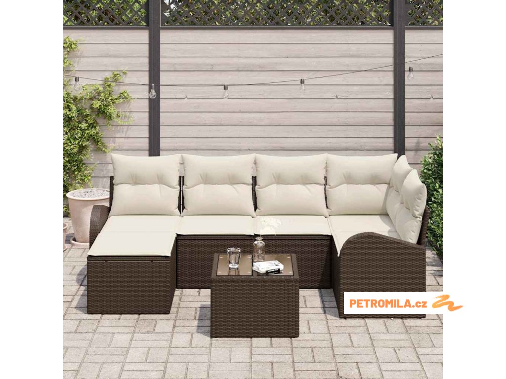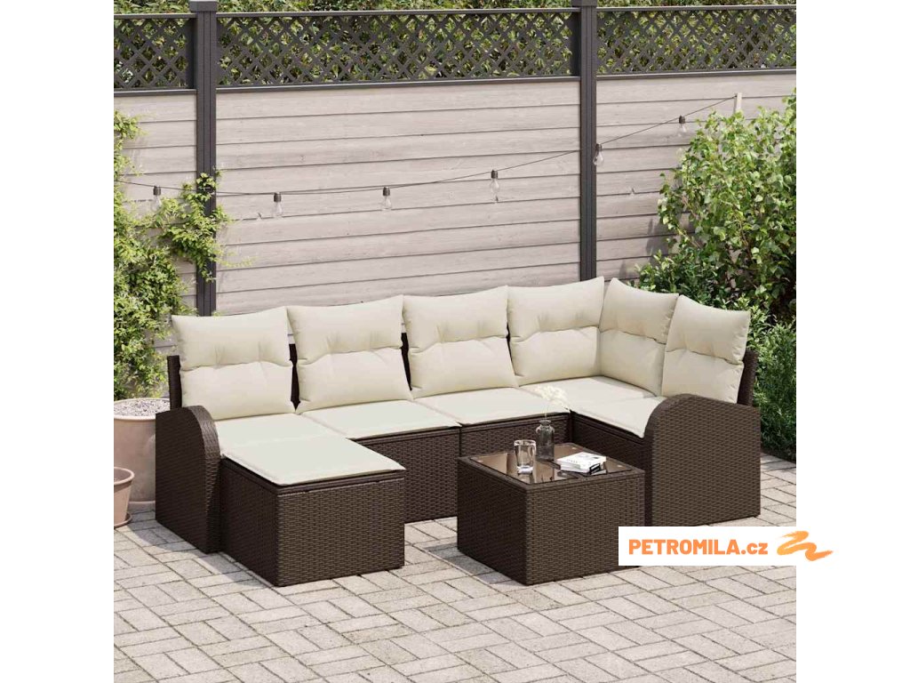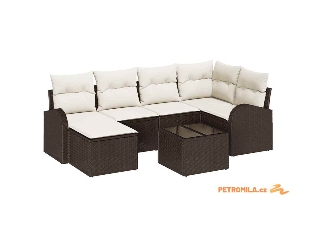 Set pohovek s polštářem 7 pcs Hnědá a bílá polyratan