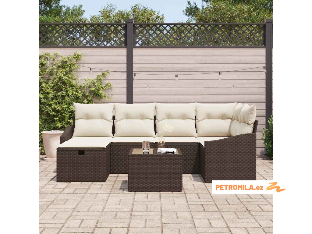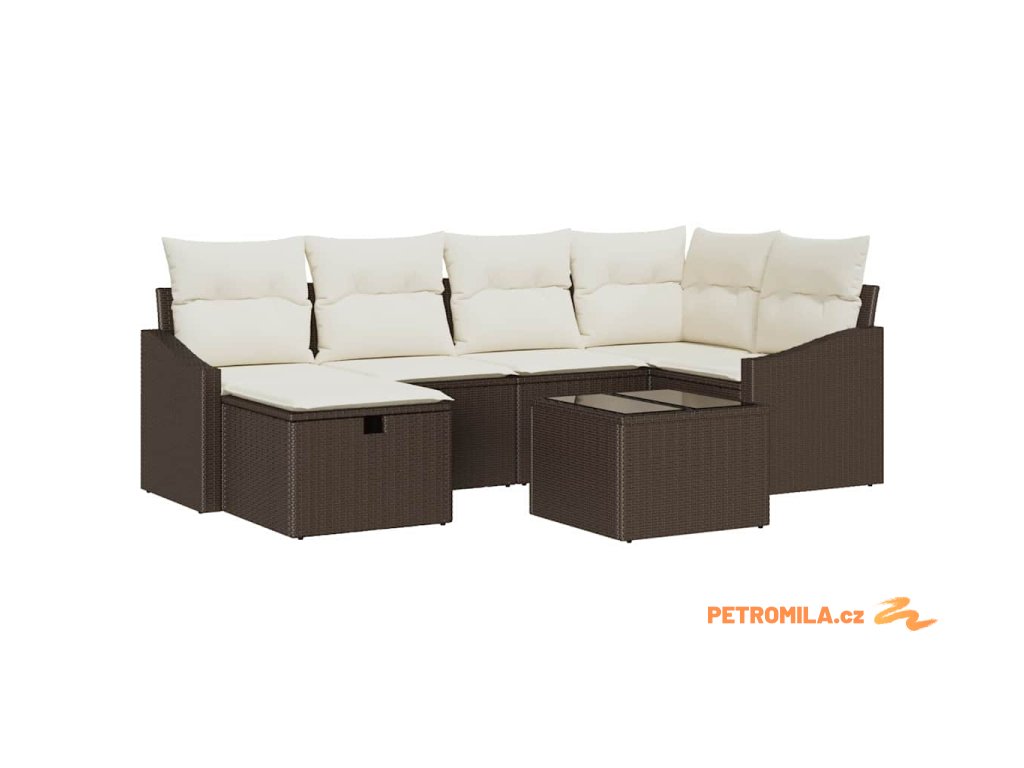 Sada zahradních pohovek s polštářem 7 pcs Hnědá Poly ratan