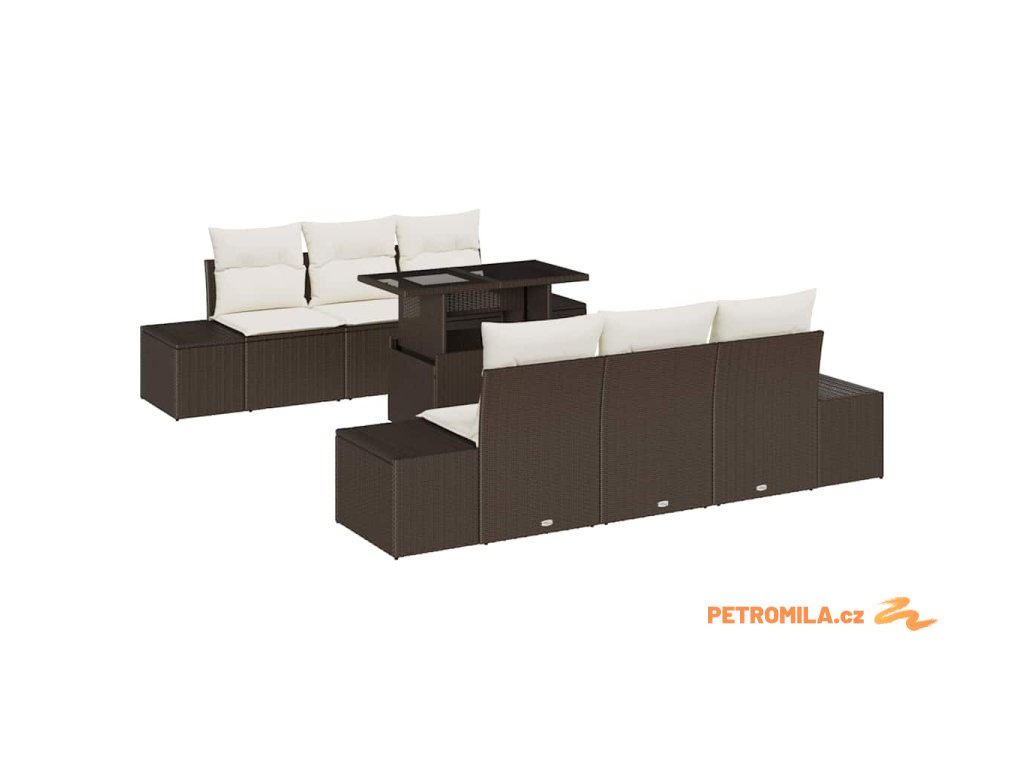 Set pohovek s polštářem 7 pcs Hnědá a krémová polyratan