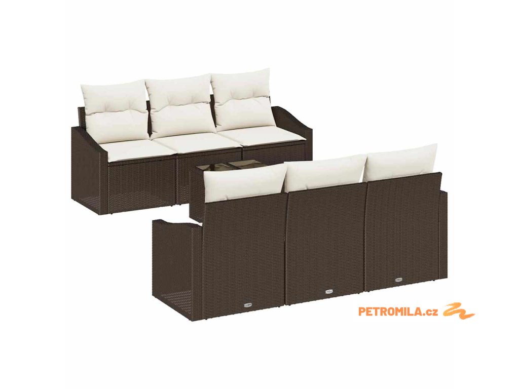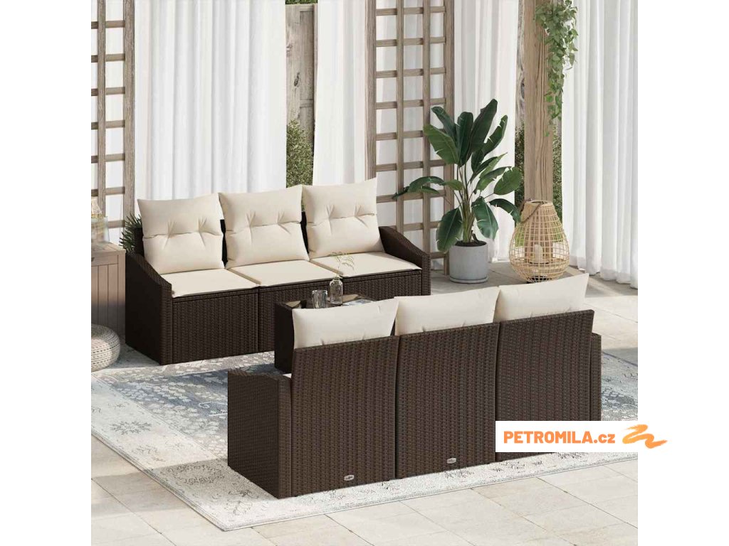 Set pohovek s polštářem 7 pcs Hnědá a krémová polyratan