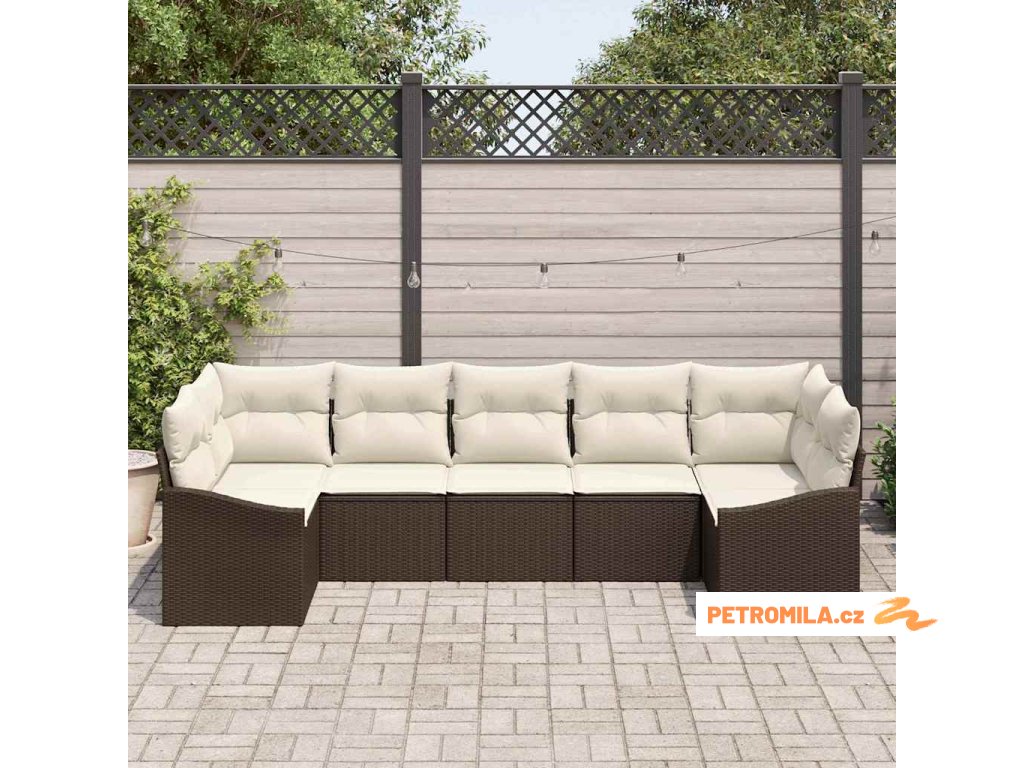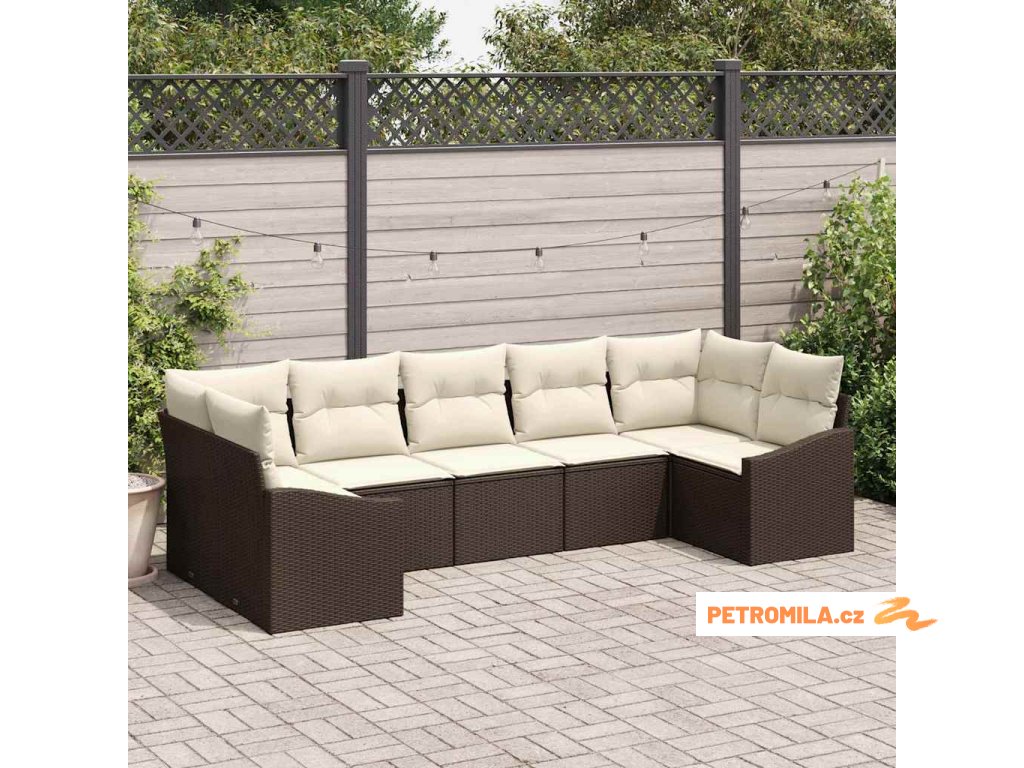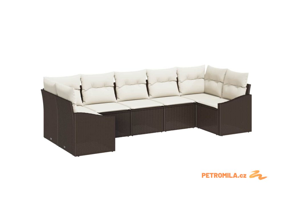 Set pohovek s polštářem 7 pcs Hnědá polyratan