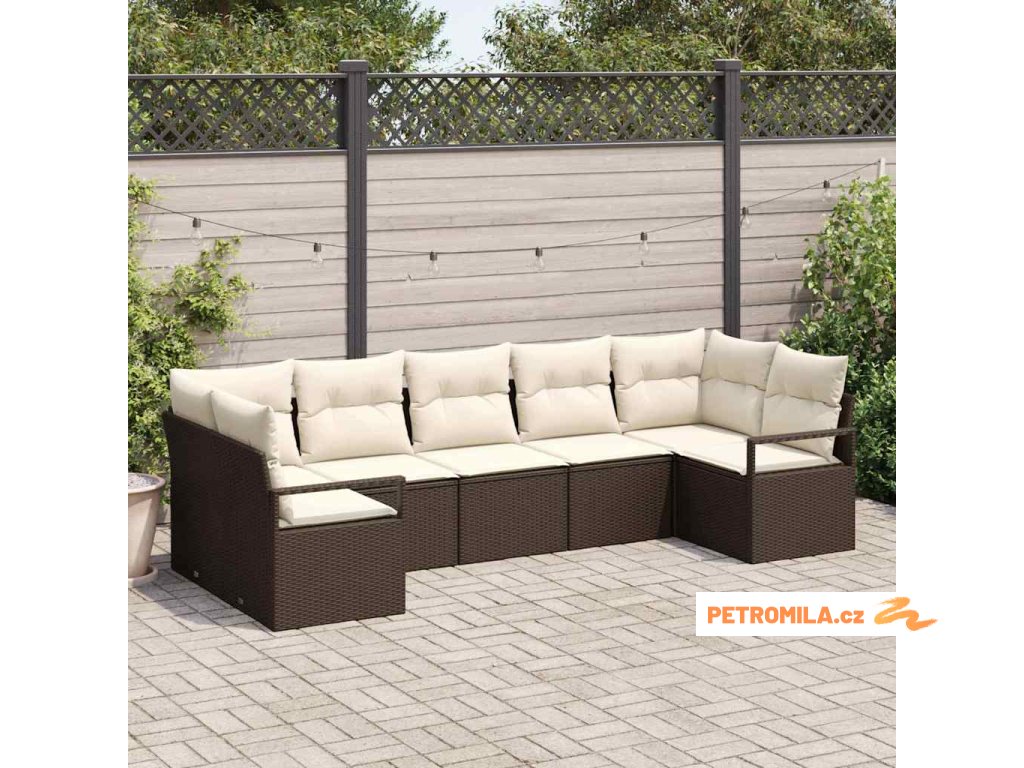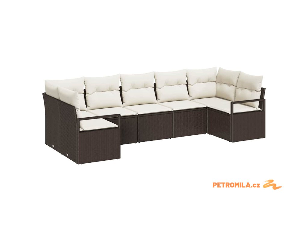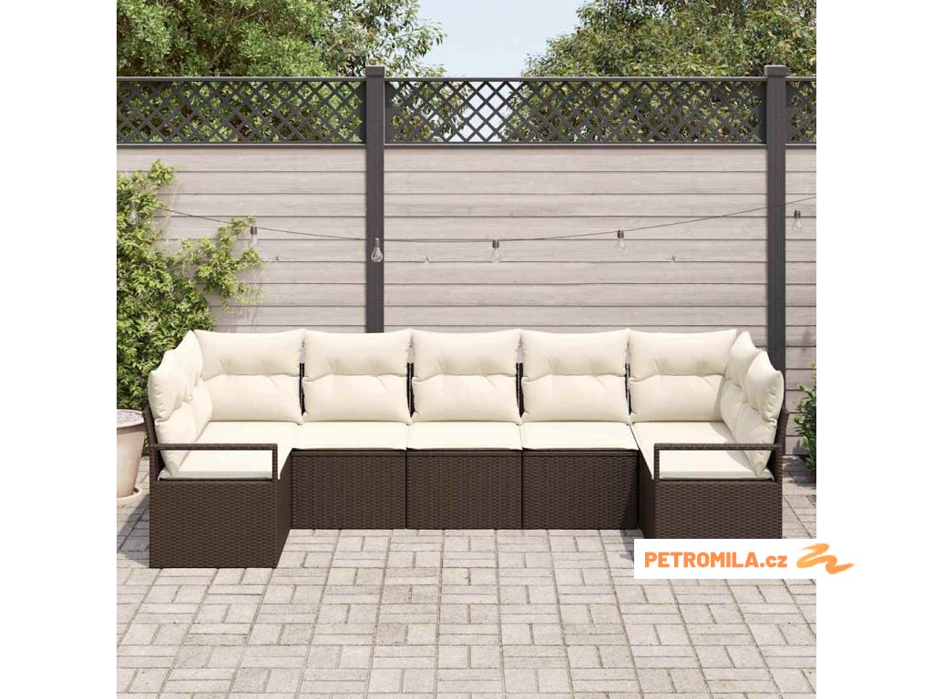 Set pohovek s polštářem 7 pcs Hnědá polyratan