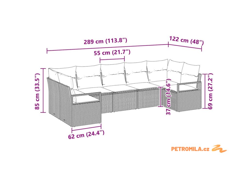 Sada zahradních pohovek s polštářem 8 pcs Béžová Poly ratan