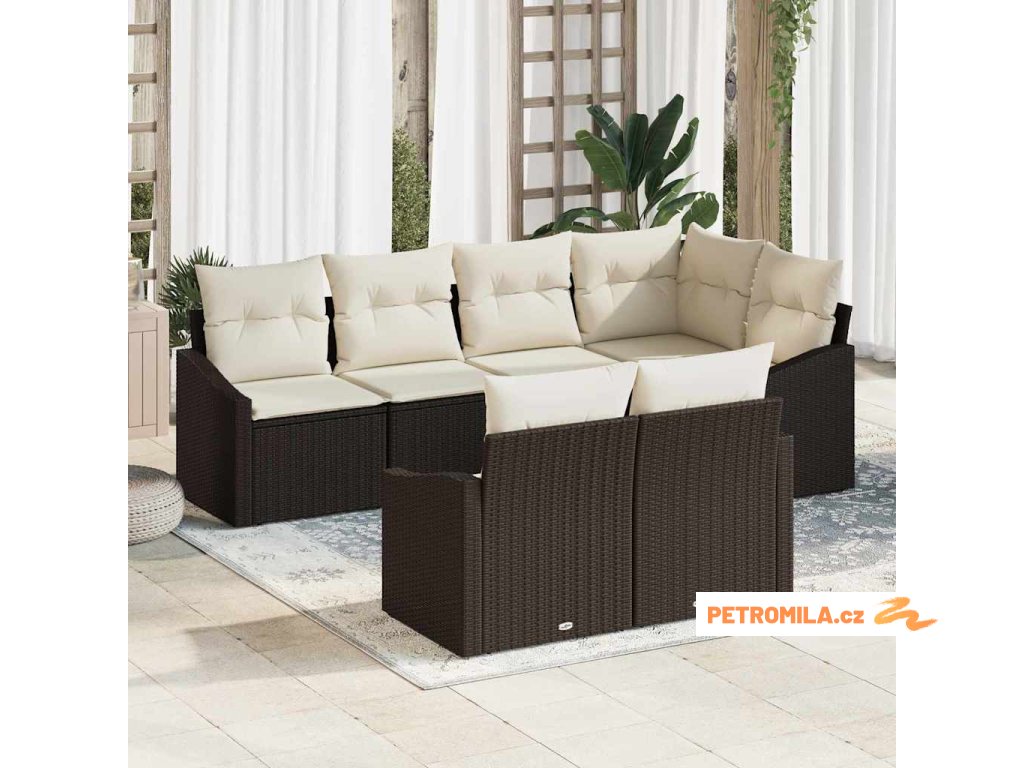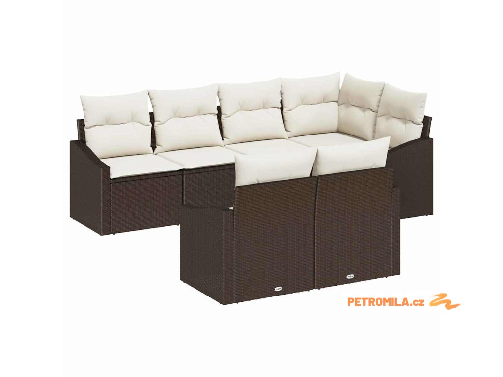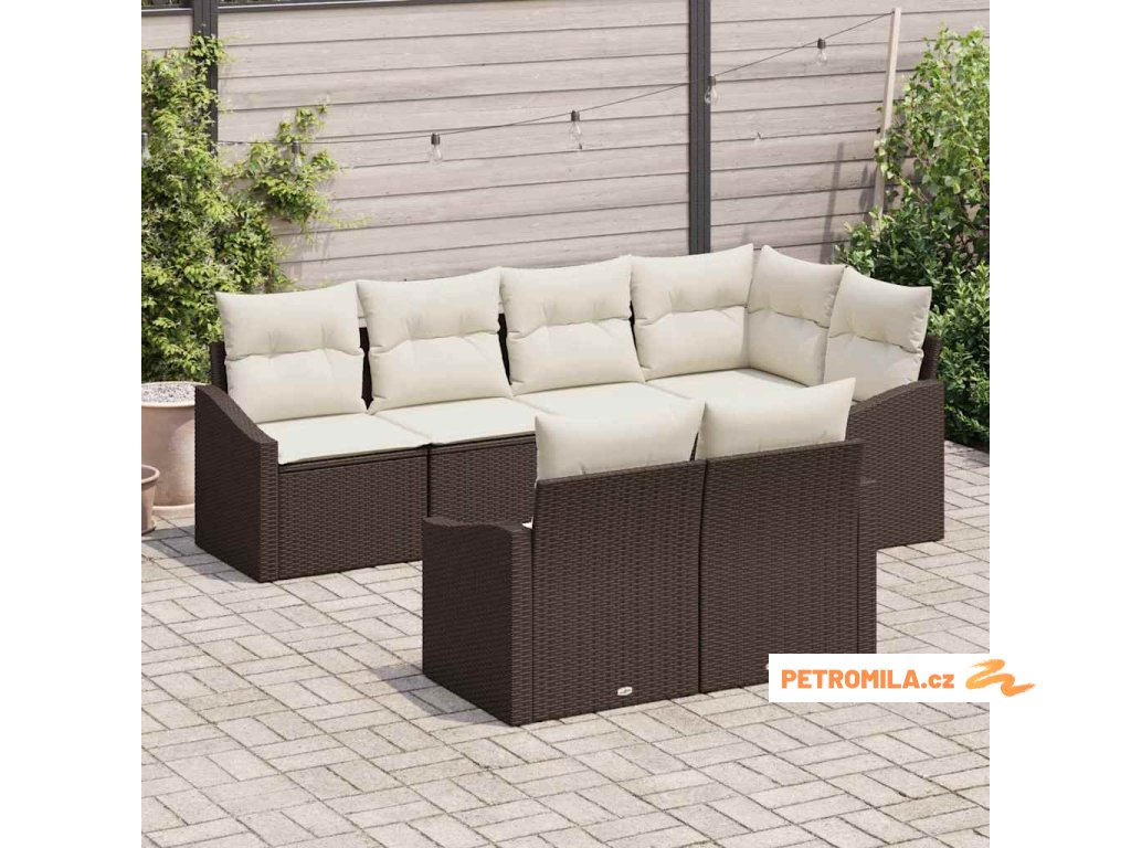 Set pohovek s polštářem 7 pcs Hnědá polyratan