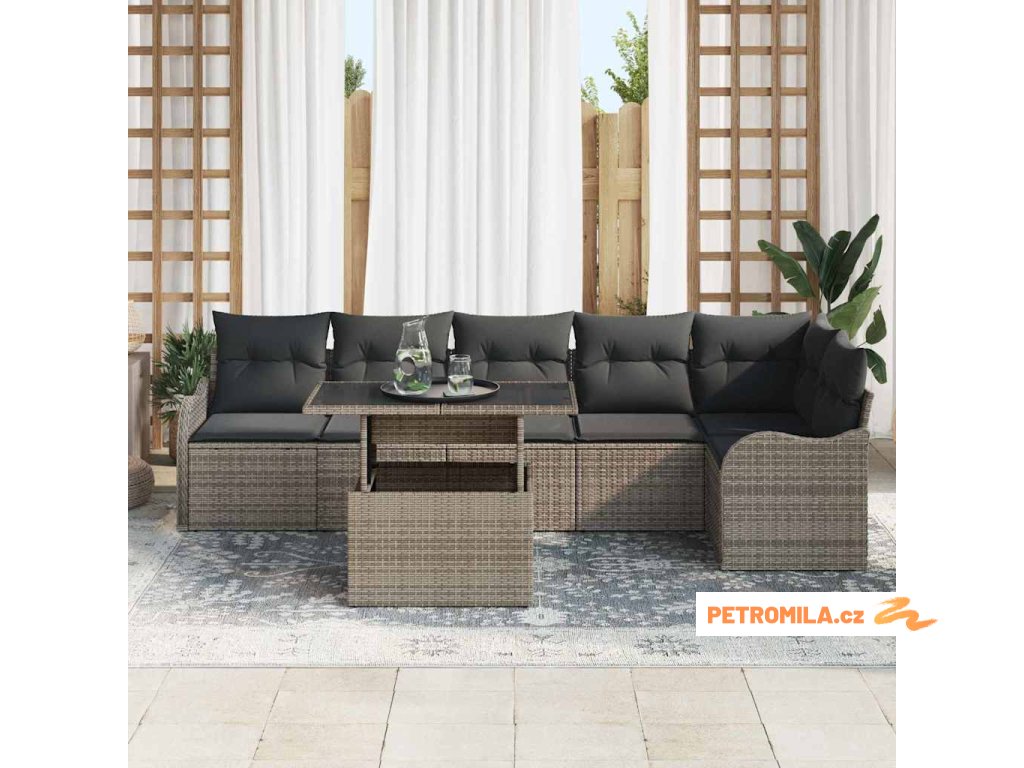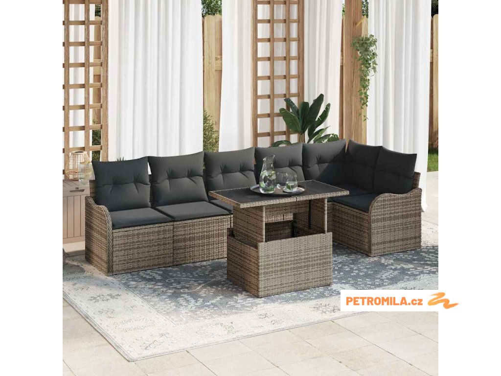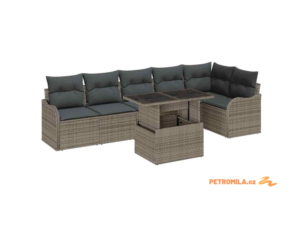 Set pohovek s polštářem 7 pcs Šedá Poly ratan