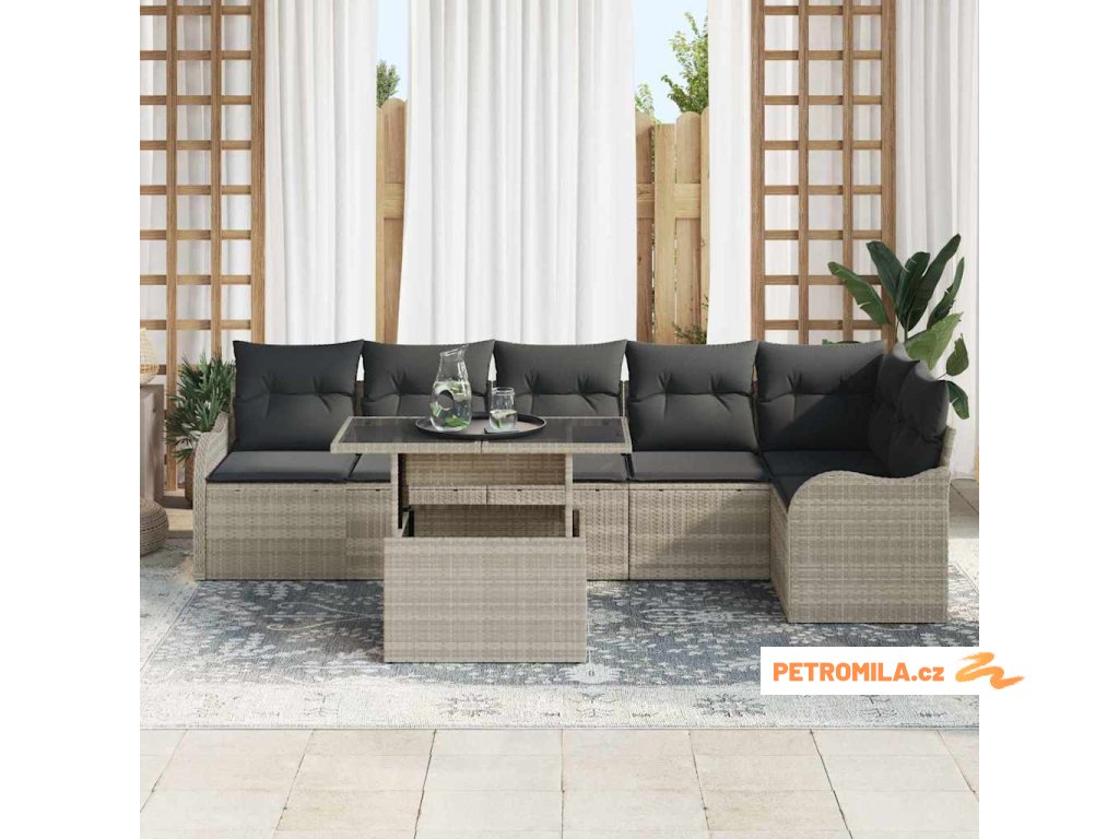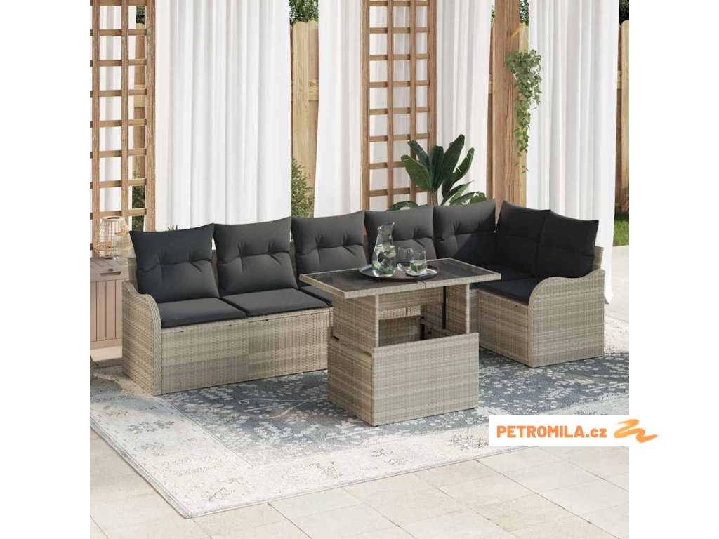 Set pohovek s polštářem 7 pcs Světle šedá Poly ratan