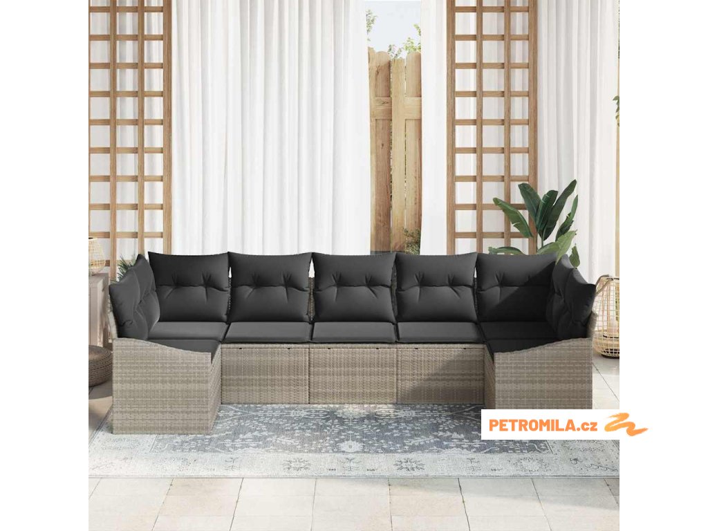 Set pohovek s polštářem 7 pcs Světle šedá polyratan
