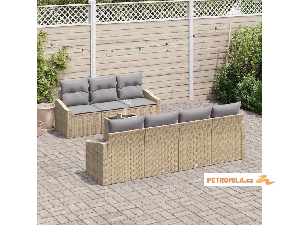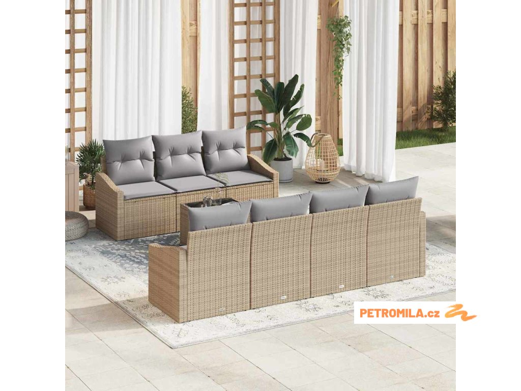 Set pohovek s polštářem 8 pcs Beige a šedá polyratan