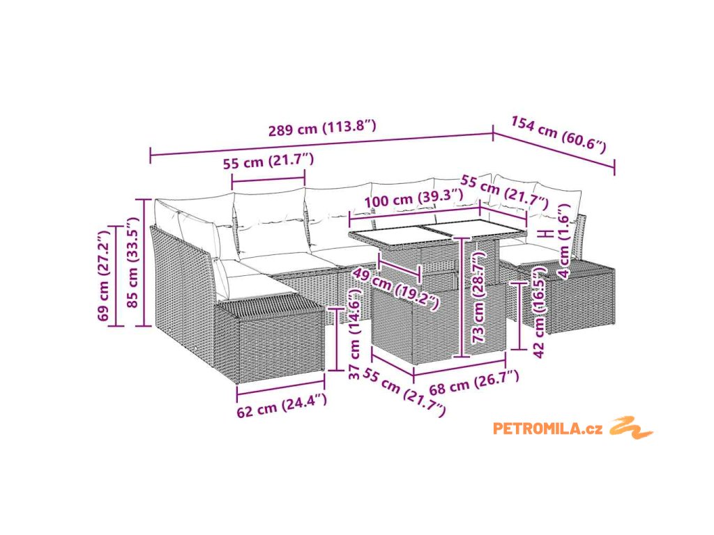 - Snadná údržba: Používejte ochranný obal, když se nábytek nepoužívá, abyste ho udrželi v kondici. Komponenty se dají snadno otřít a údržba je tak jednoduchá.