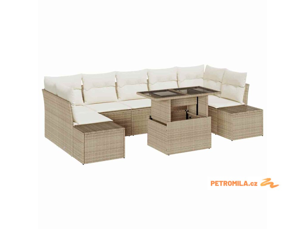Set pohovek s polštářem 8 pcs Béžová a krémová polyratan