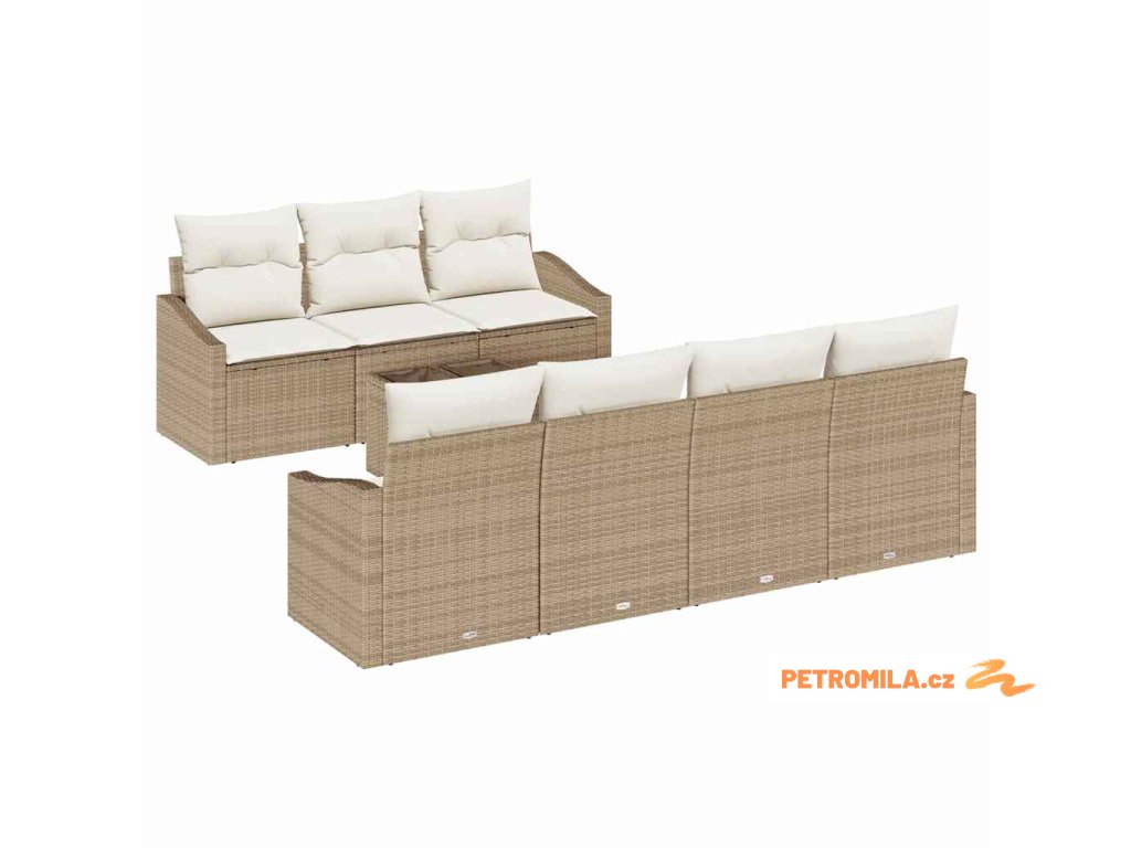 Set pohovek s polštářem 8 pcs Béžová a krémová polyratan