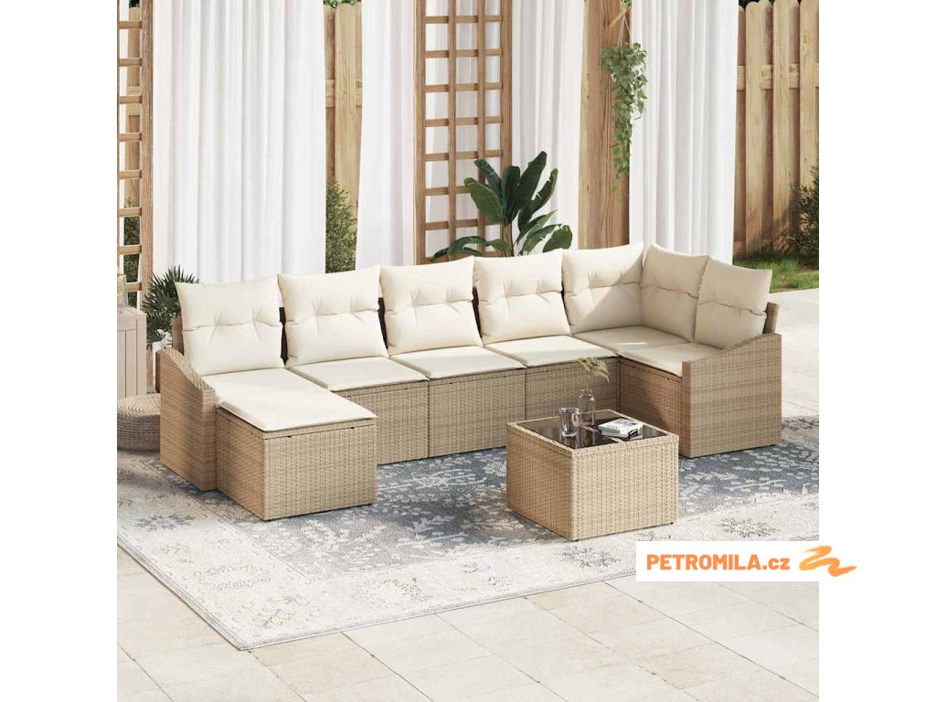 Set pohovek s polštářem 8 pcs Béžová polyratan