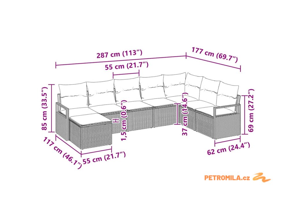 Set pohovek s polštářem 8 pcs Béžová polyratan