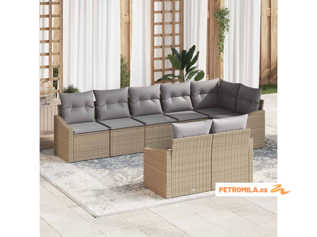 Sada zahradních pohovek s polštářem 8 pcs Béžová Poly ratan