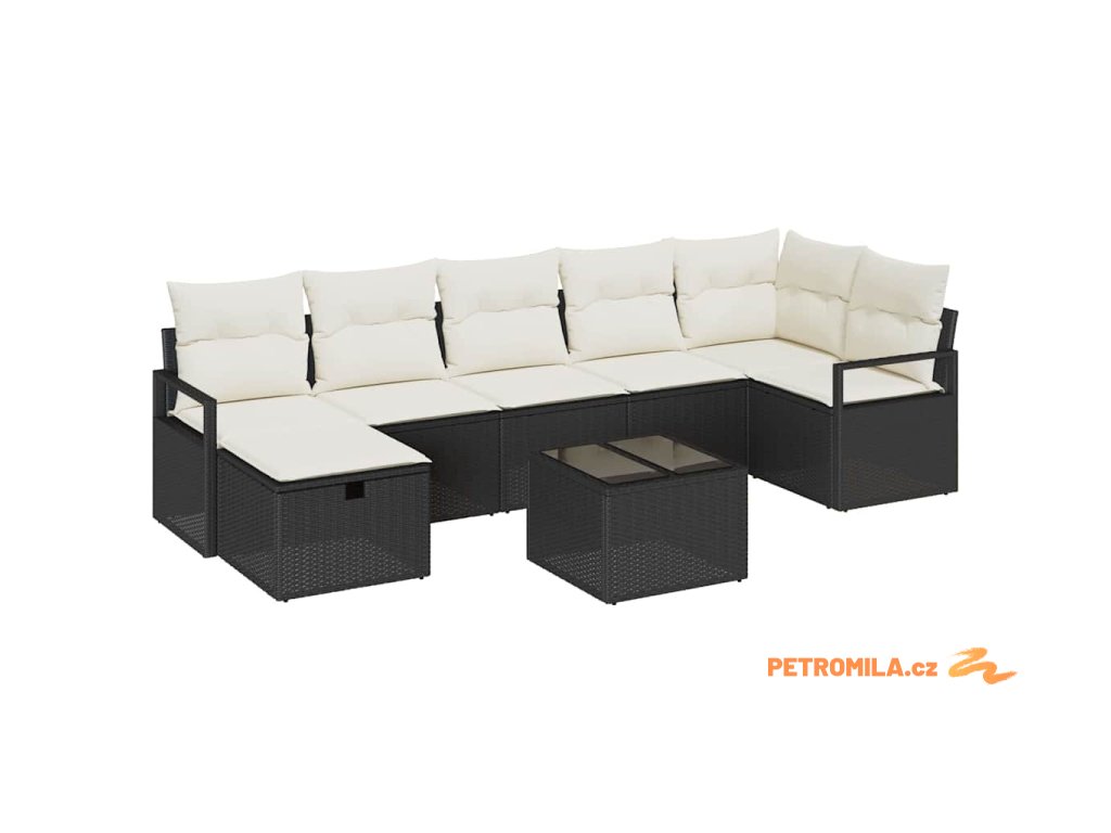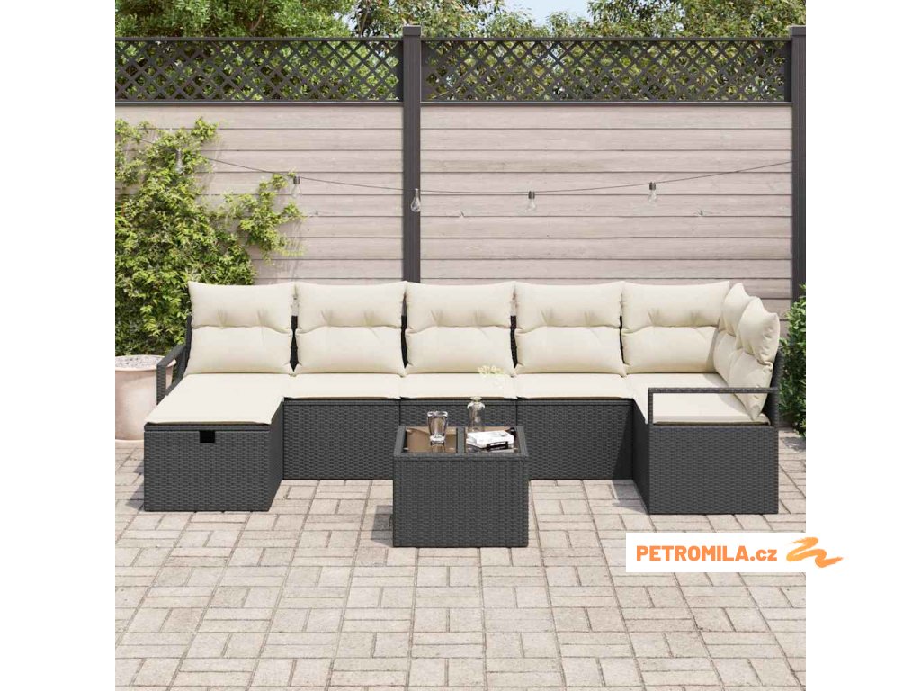 Set pohovek s polštářem 8 pcs Černá a krémová polyratan