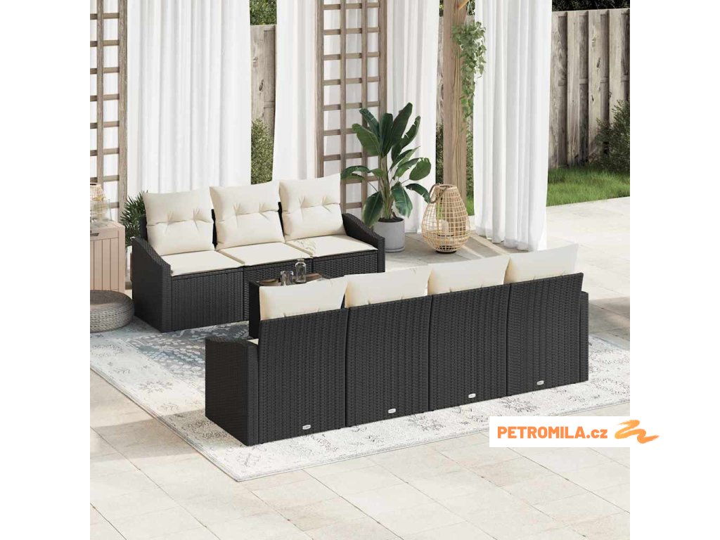 Set pohovek s polštářem 8 pcs Černá a krémová polyratan