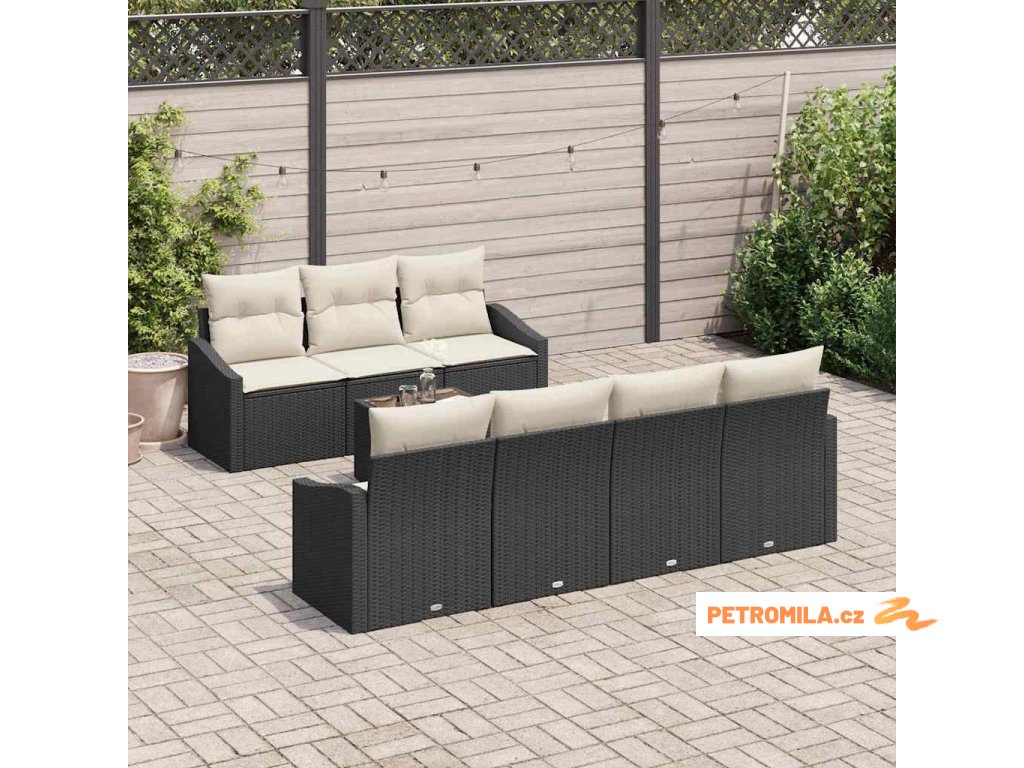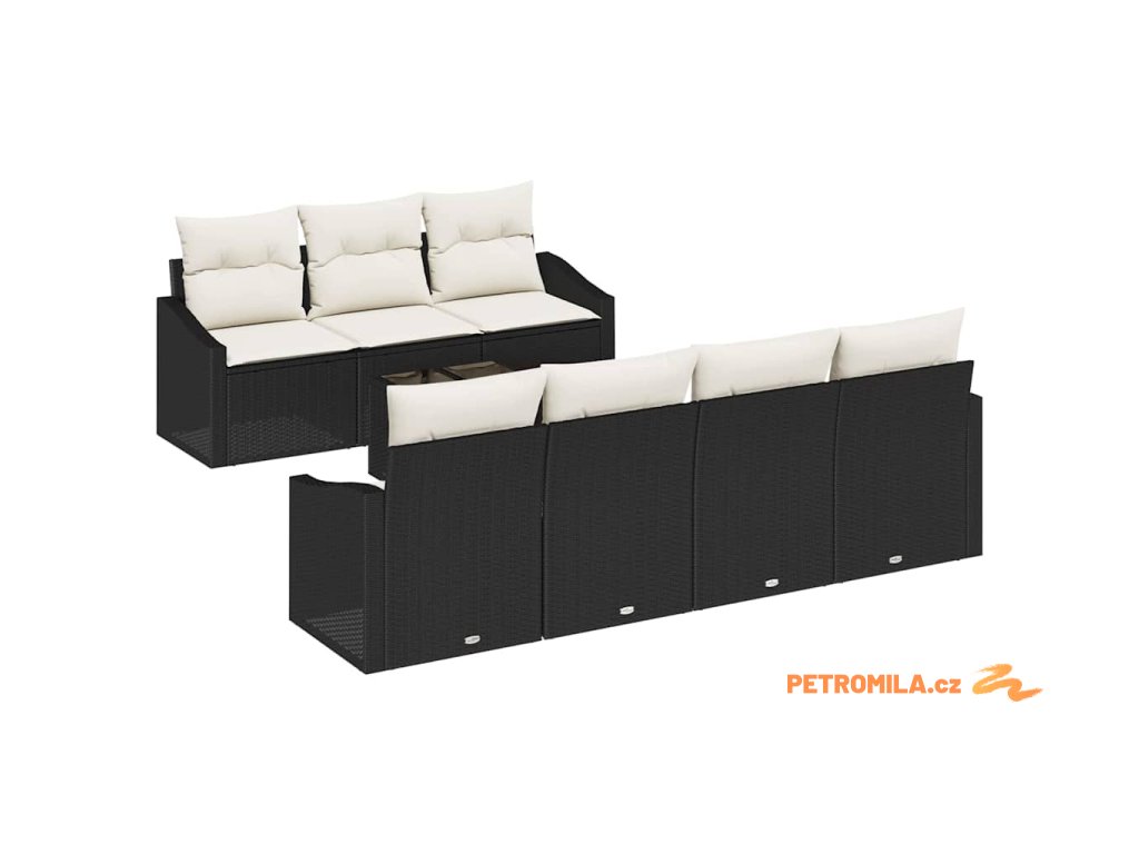 Set pohovek s polštářem 8 pcs Černá a krémová polyratan