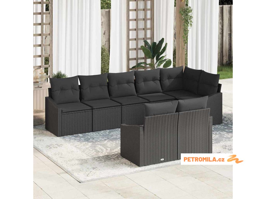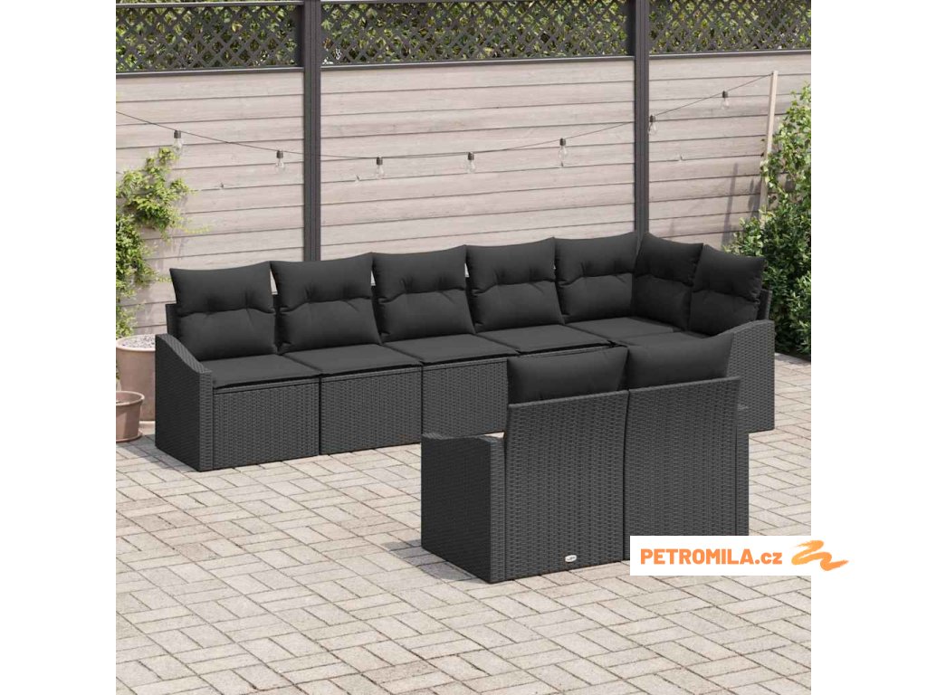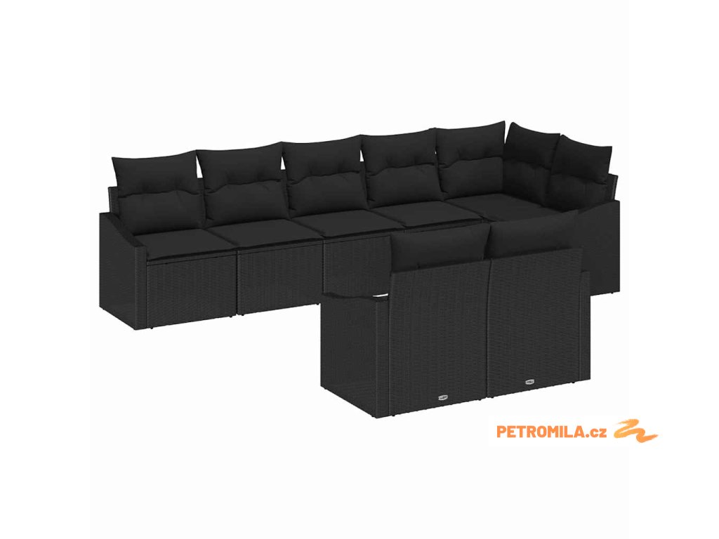 Set pohovek s polštářem 8 pcs Černá polyratan