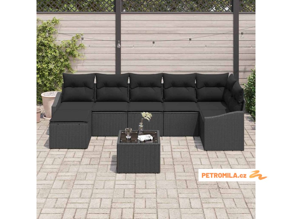 Set pohovek s polštářem 8 pcs Černá polyratan
