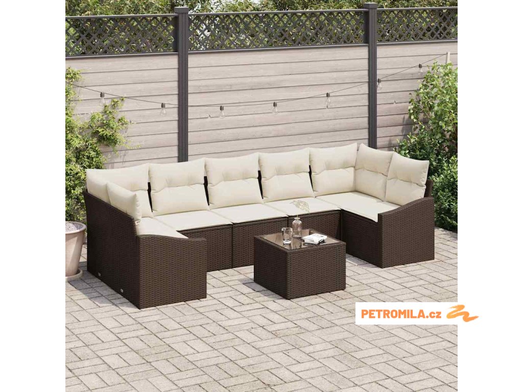 Set pohovek s polštářem 8 pcs Hnědá a krémová polyratan