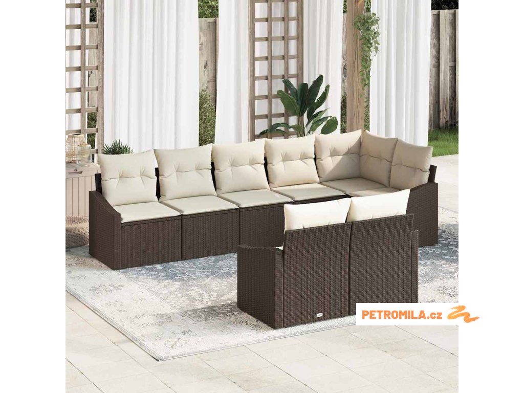 Set pohovek s polštářem 8 pcs Hnědá polyratan