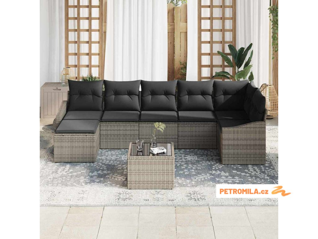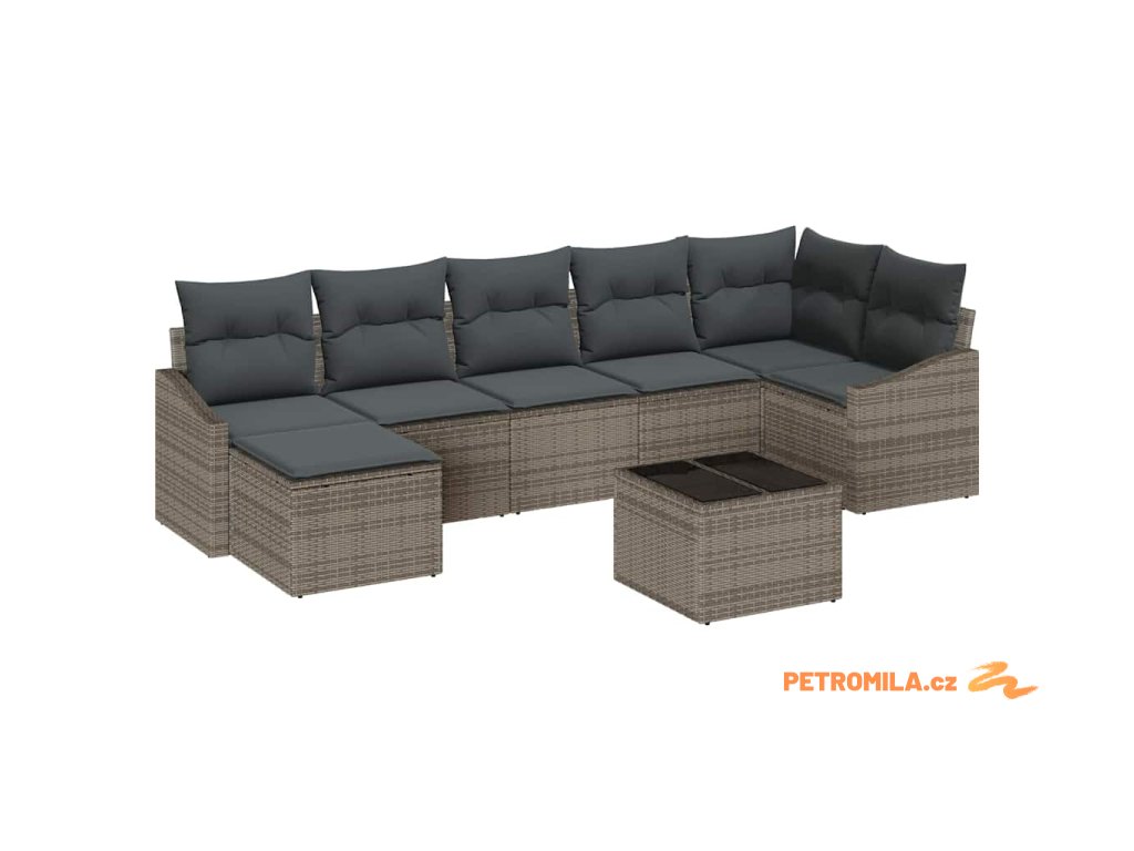 Sada zahradních pohovek s polštářem 8 pcs Šedá Poly ratan