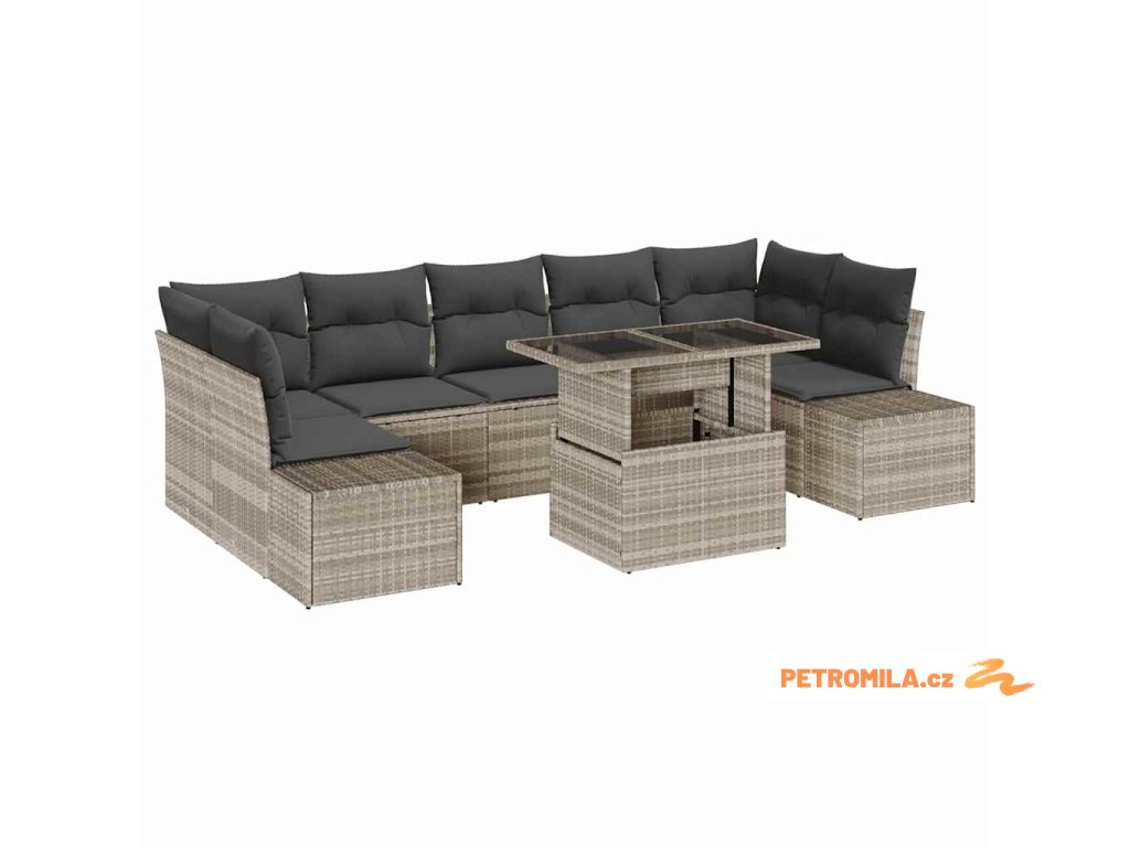 Set pohovek s polštářem 8 pcs Světle šedá polyratan