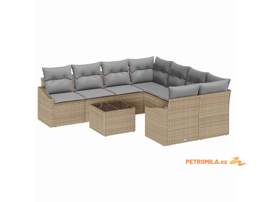 Set pohovek s polštářem 9 pcs Beige a šedá polyratan