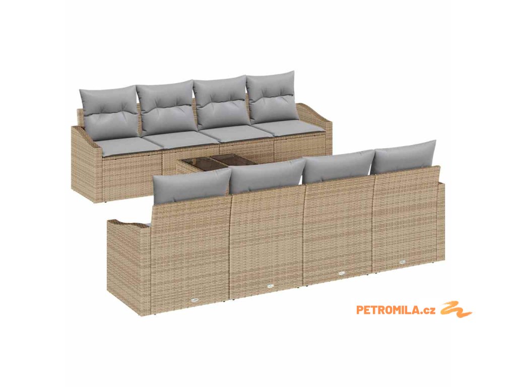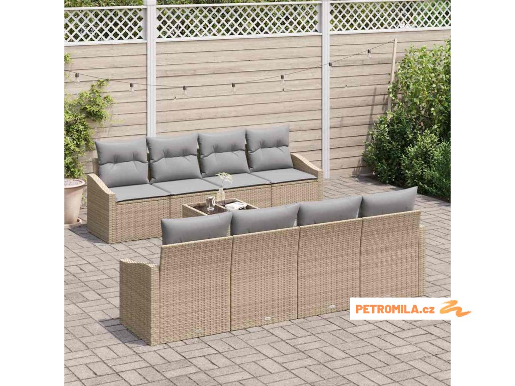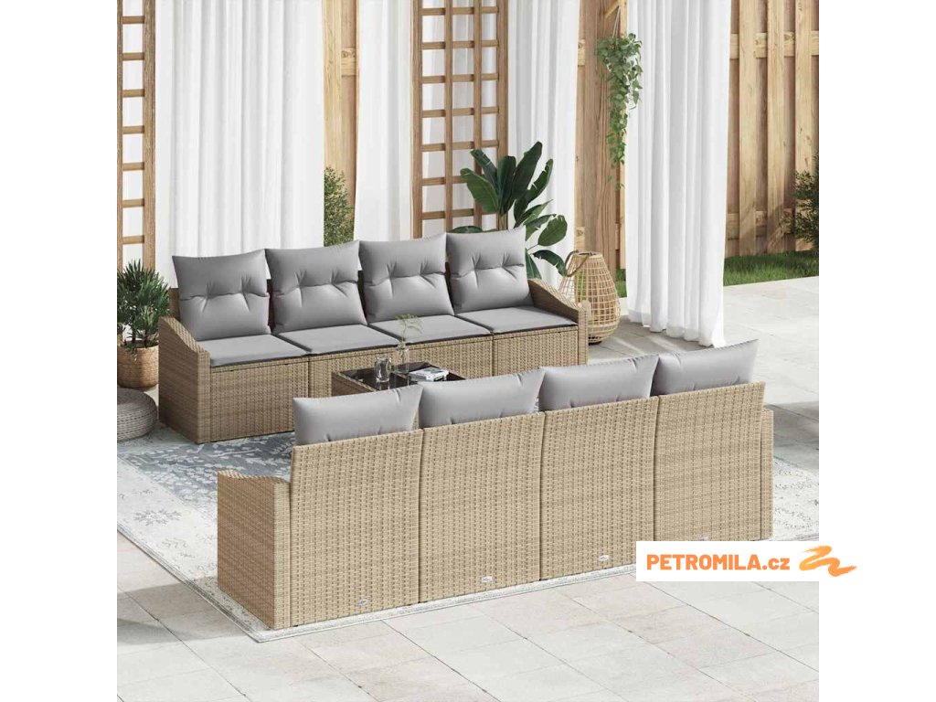 Set pohovek s polštářem 9 pcs Béžová a Světle šedá polyratan