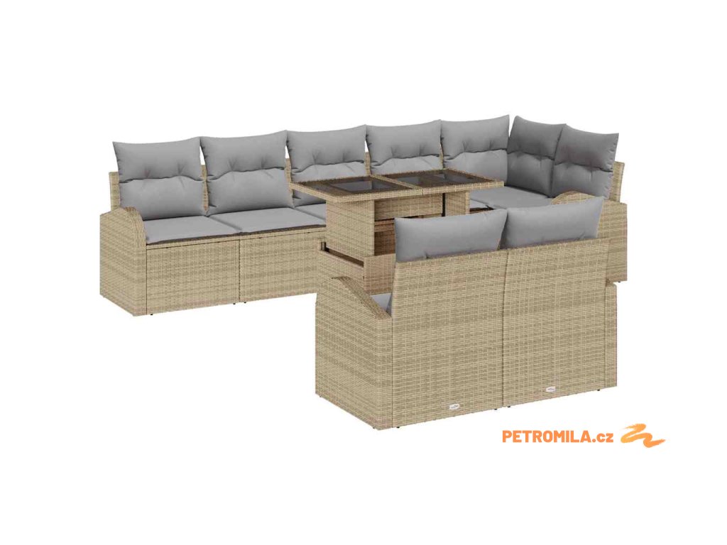 Set pohovek s polštářem 9 pcs Béžová a Světle šedá polyratan