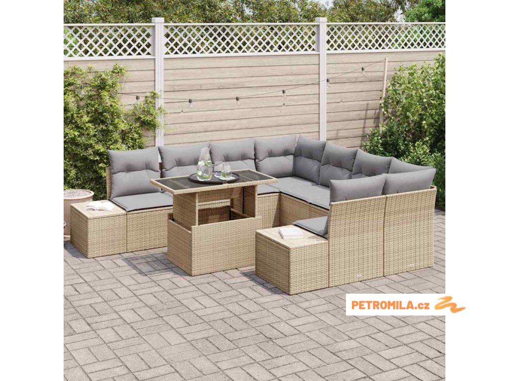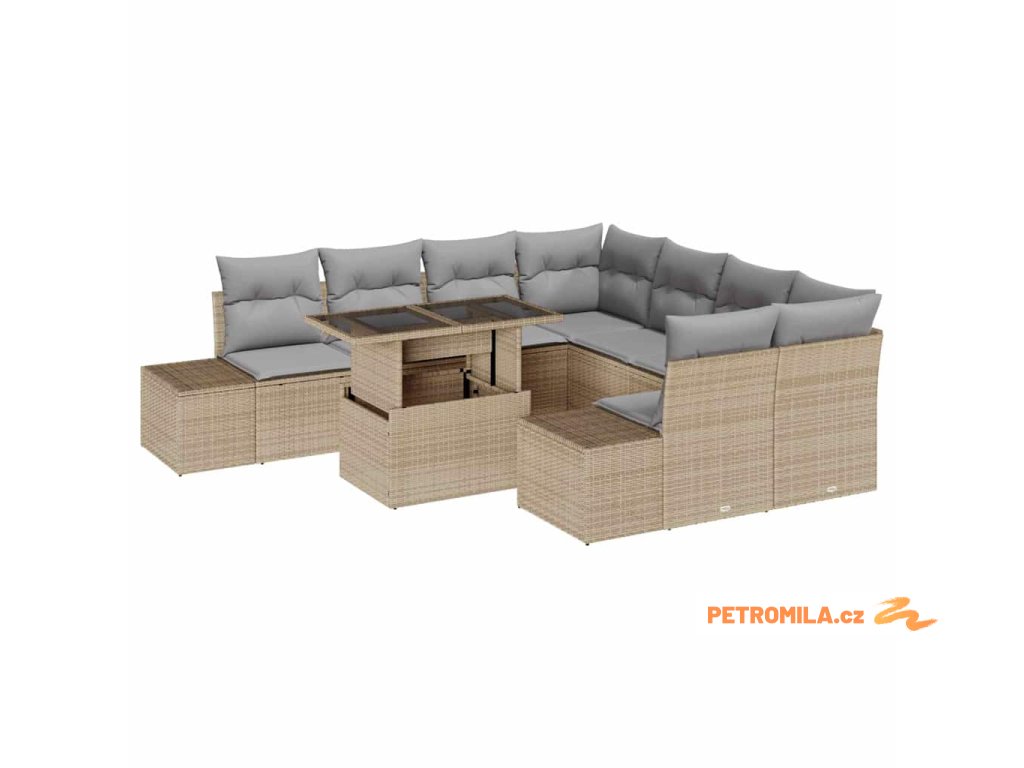 Set pohovek s polštářem 9 pcs Béžová a Světle šedá polyratan