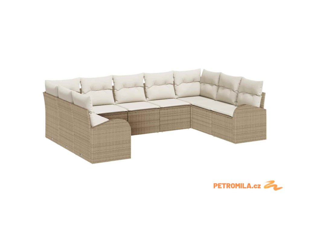 Sada zahradních pohovek s polštářem 9 pcs Béžová Poly ratan