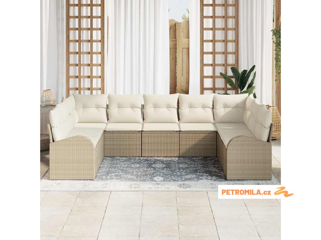 Sada zahradních pohovek s polštářem 8 pcs Béžová Poly ratan
