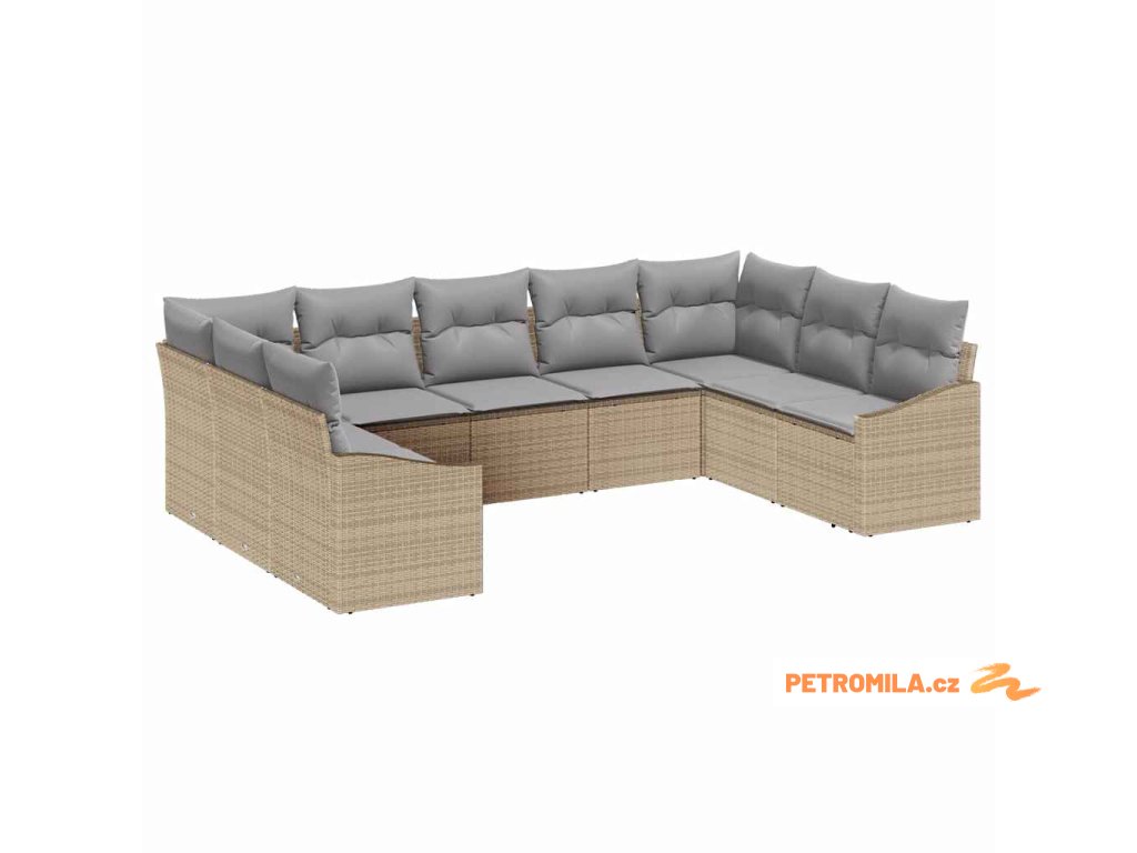 Set pohovek s polštářem 9 pcs Béžová polyratan