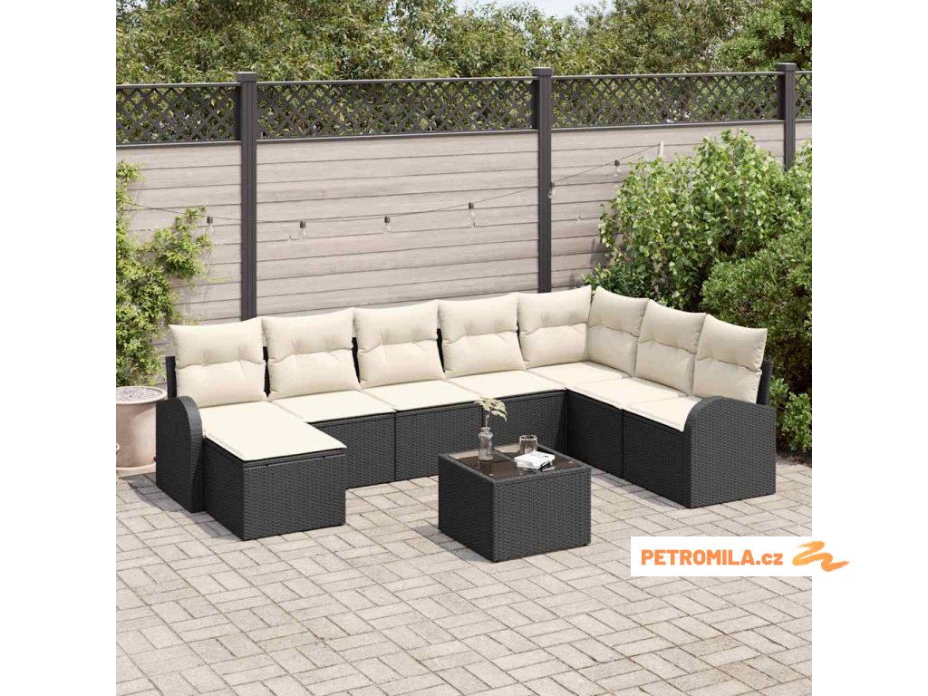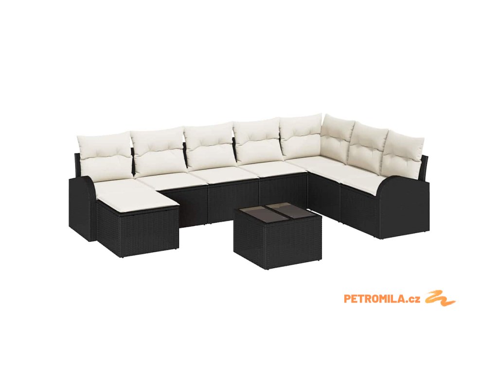 Set pohovek s polštářem 9 pcs Černá a bílá polyratan