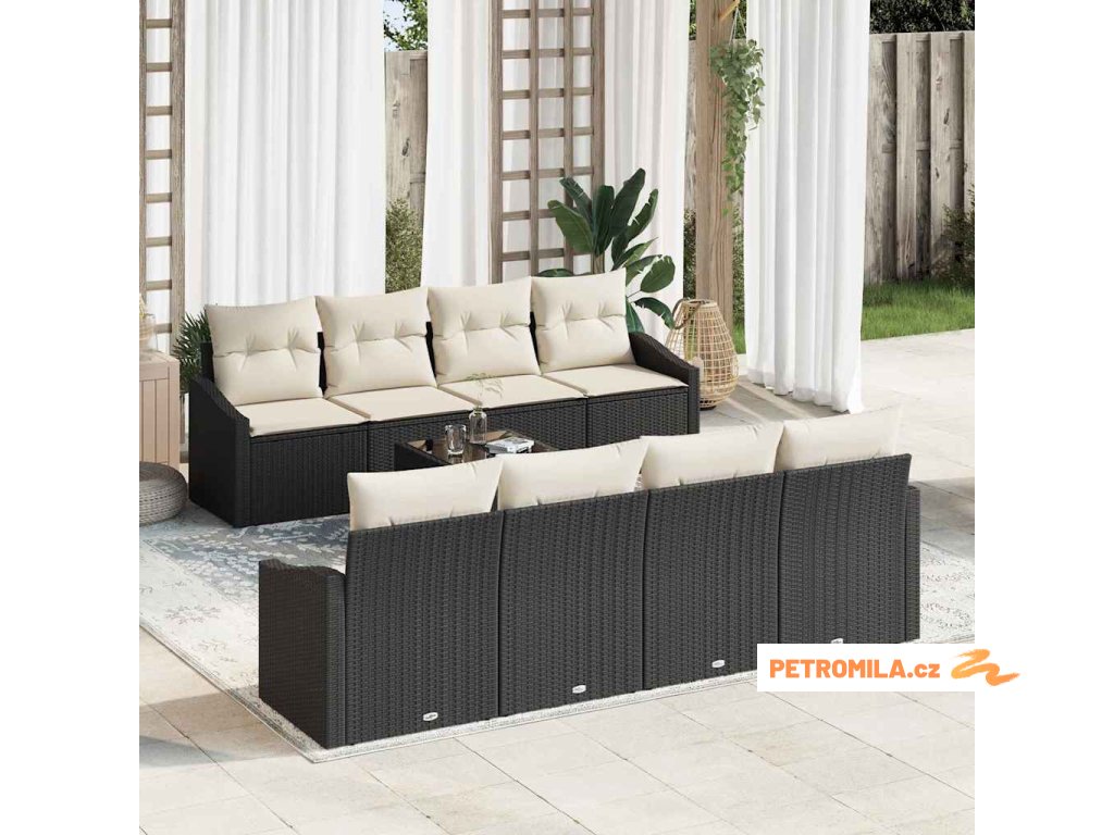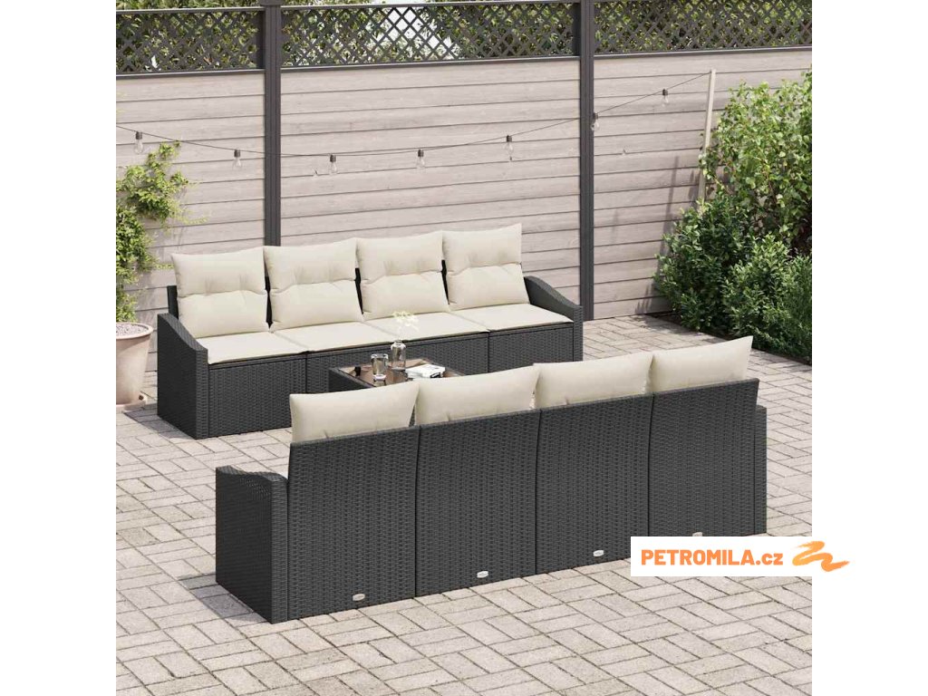 Set pohovek s polštářem 9 pcs Černá a krémová polyratan