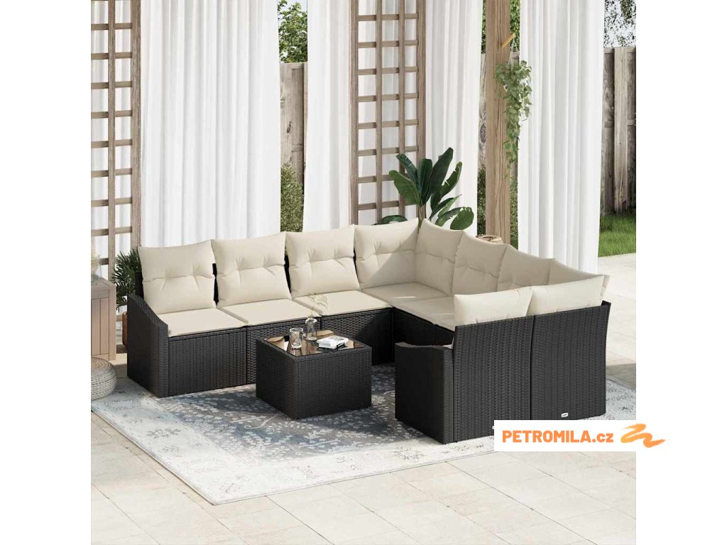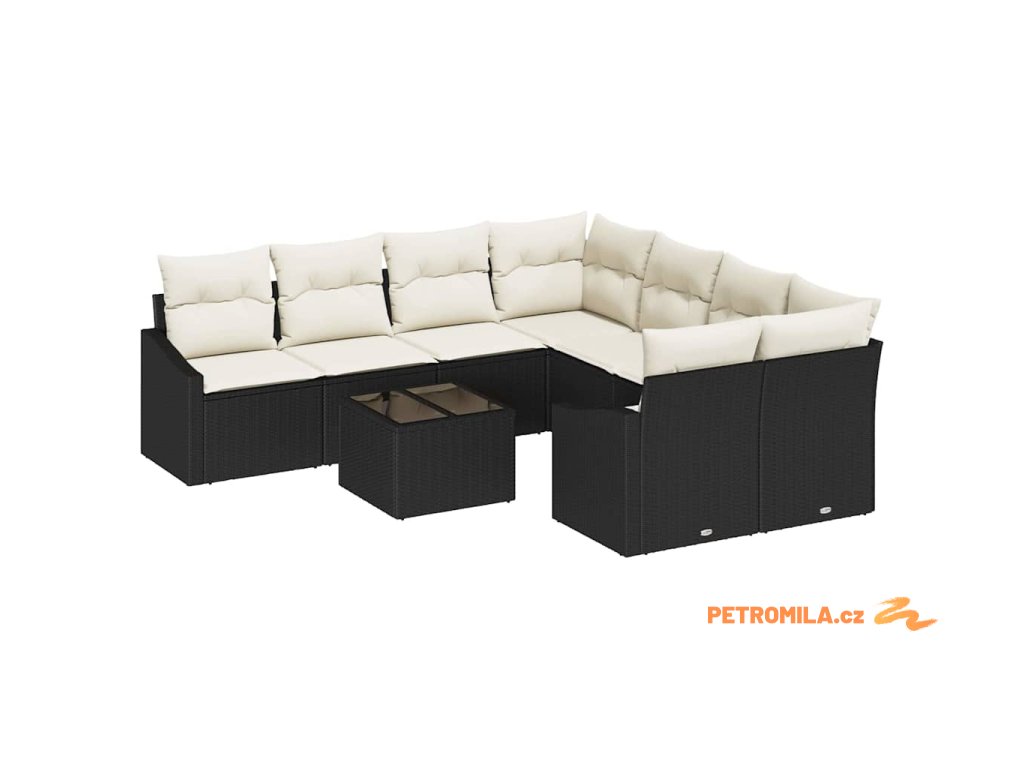 Set pohovek s polštářem 9 pcs Černá a krémová polyratan