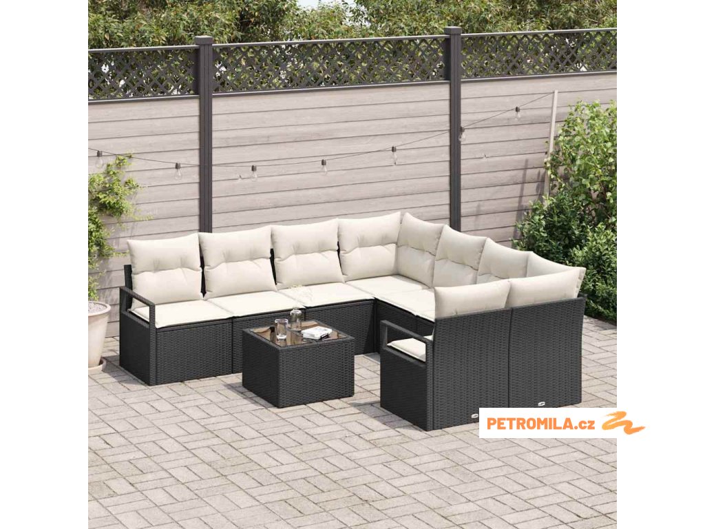 Set pohovek s polštářem 9 pcs Černá a krémová polyratan