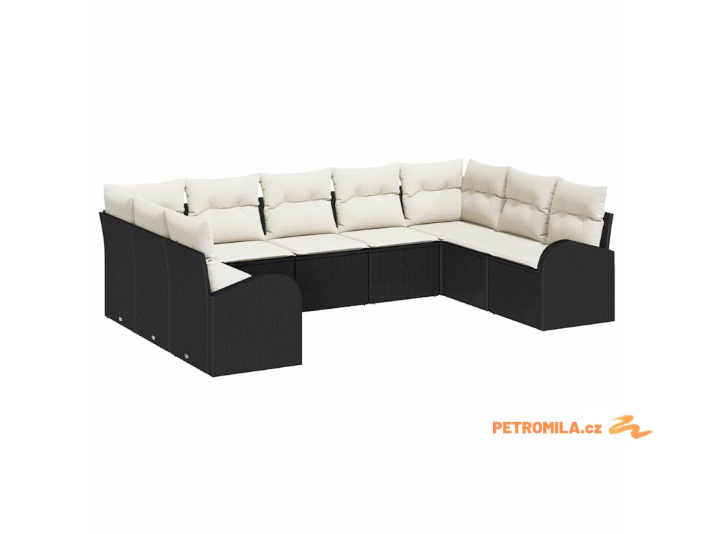 Set pohovek s polštářem 9 pcs Černá Poly Ratan
