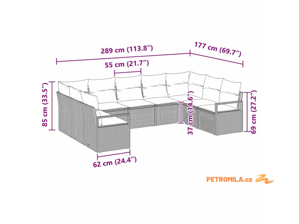Sada zahradních pohovek s polštářem 9 pcs Béžová Poly ratan