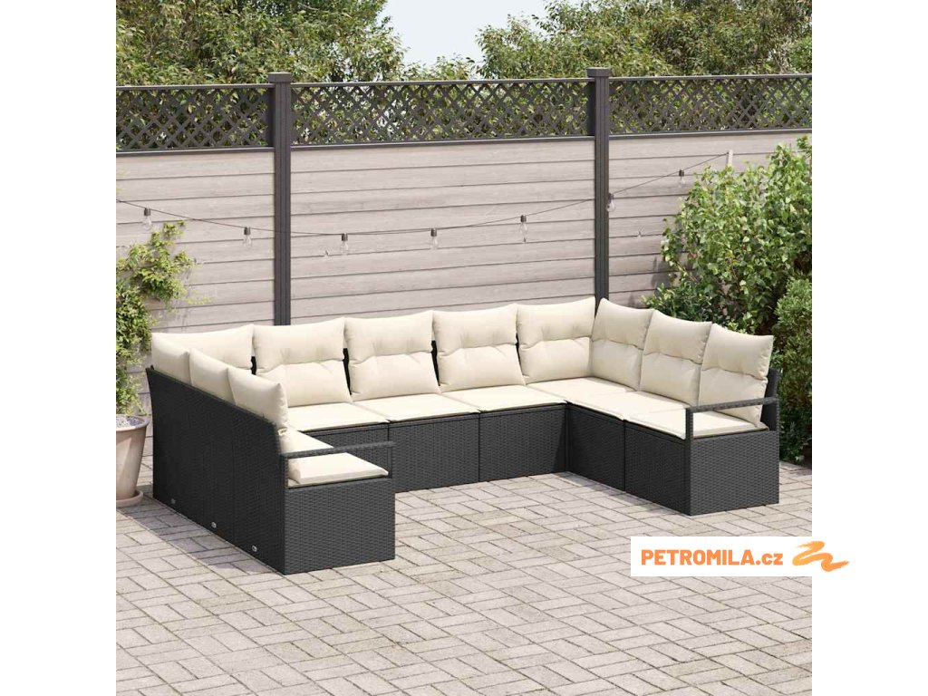 9dílný zahradní jídelní set s poduškami černý polyratan
