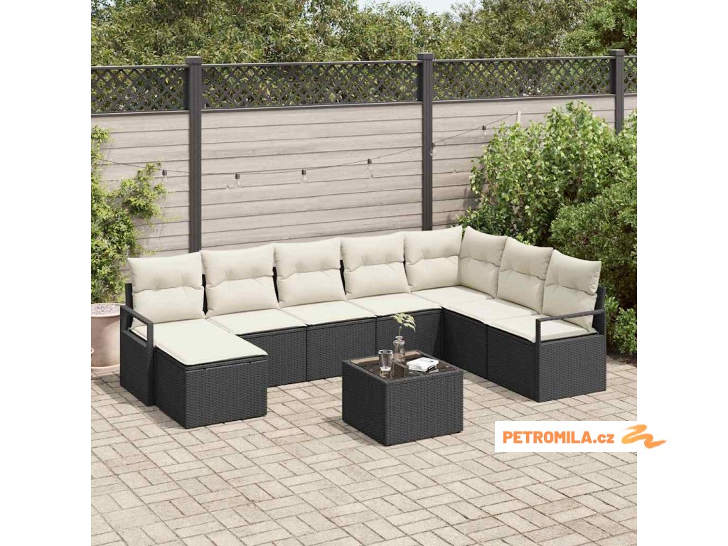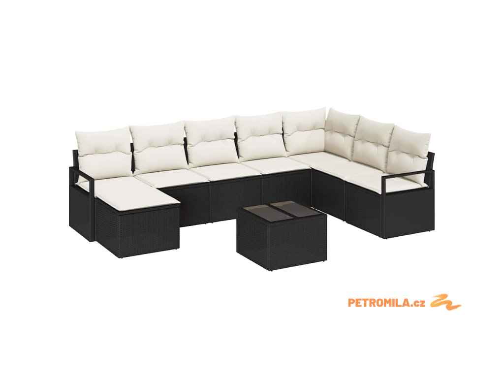 Set pohovek s polštářem 9 pcs Černá polyratan
