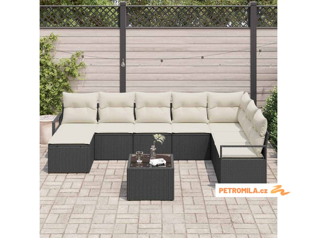 9dílný zahradní jídelní set s poduškami černý polyratan