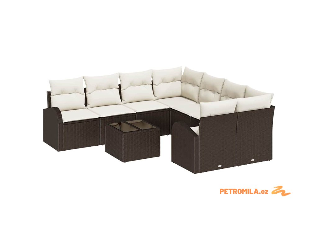 Set pohovek s polštářem 9 pcs Hnědá a krémová polyratan