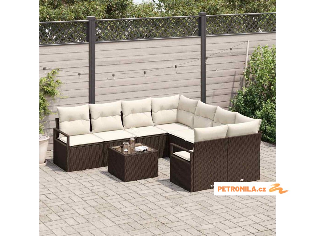 Set pohovek s polštářem 9 pcs Hnědá a krémová polyratan