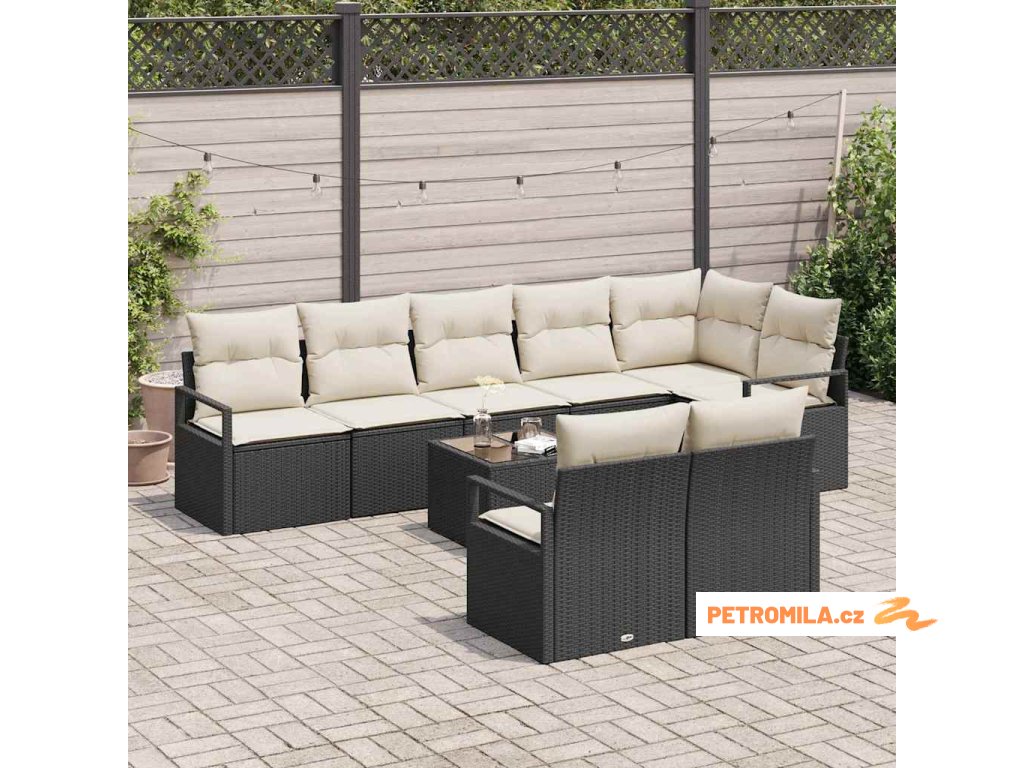 Set pohovek s polštářem 9 pcs Hnědá a krémová polyratan
