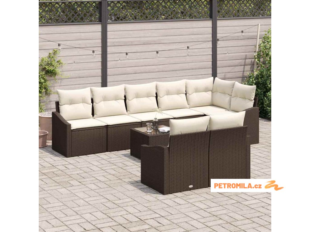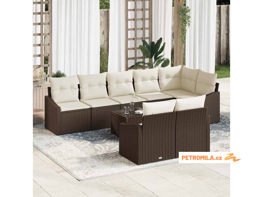 Set pohovek s polštářem 9 pcs Hnědá polyratan