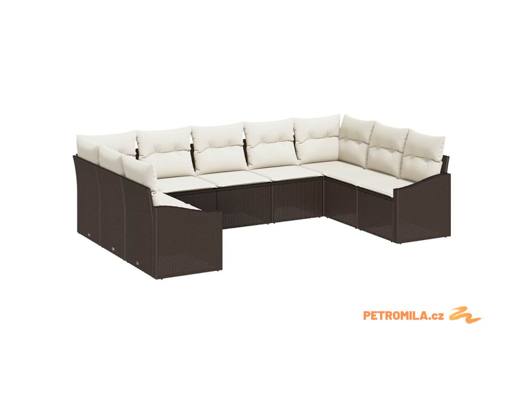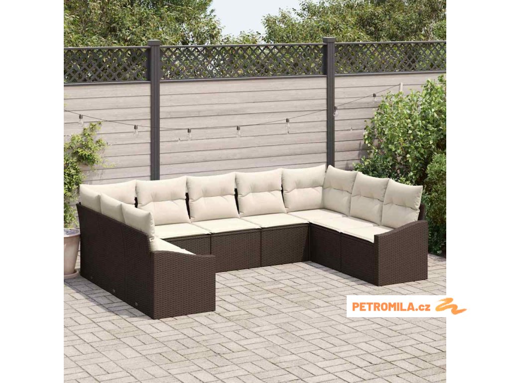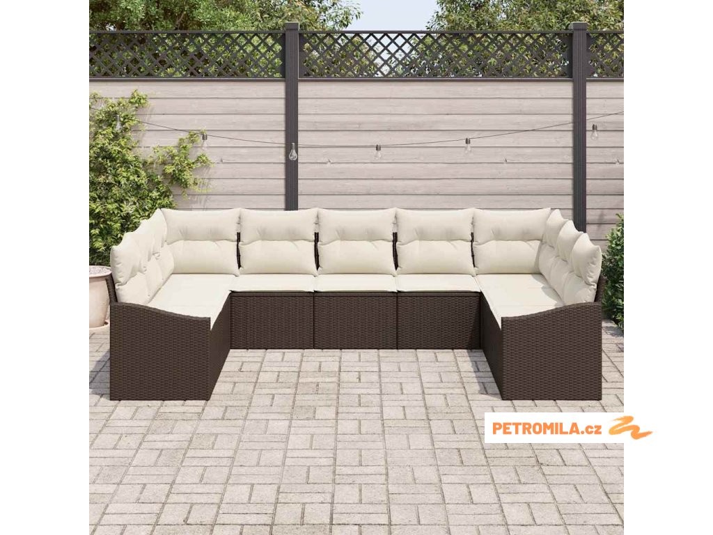 Set pohovek s polštářem 9 pcs Hnědá polyratan