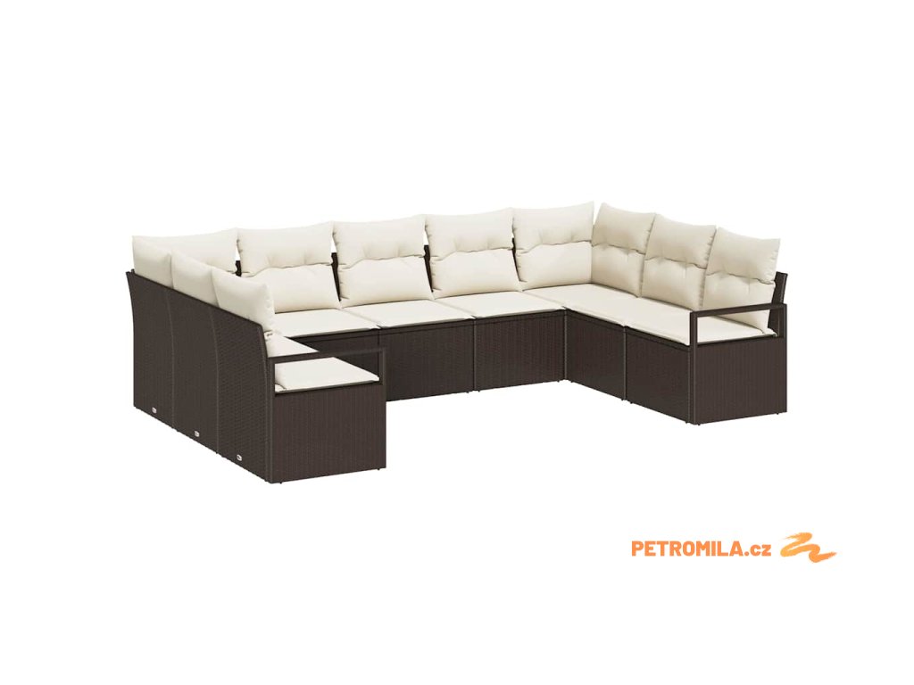 Set pohovek s polštářem 9 pcs Hnědá polyratan