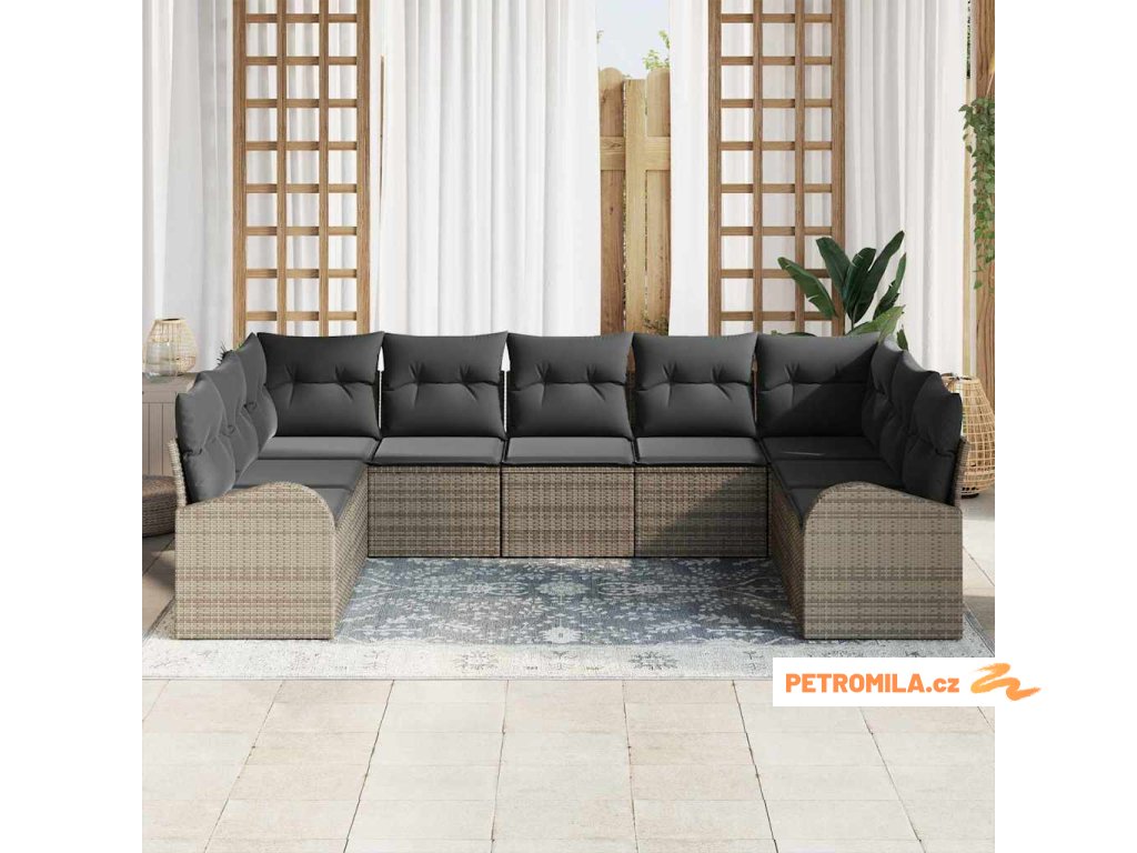 Set pohovek s polštářem 9 pcs Šedá Poly Ratan